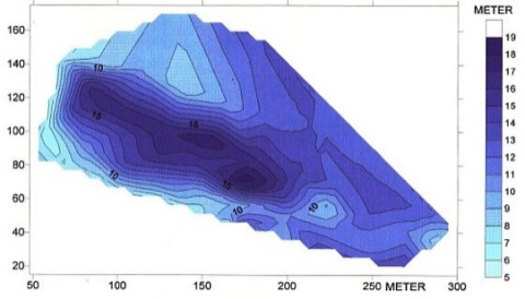 Baugrund Hotelneubau. Und was war da vorher im Untergrund? Isoohmen des Horizontalgradienten des scheinbaren spezifischen Widerstandes. Gradientenmethode.